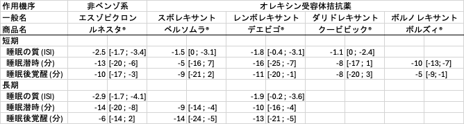 不眠症薬物療法ガイドライン・エビデンス比較表